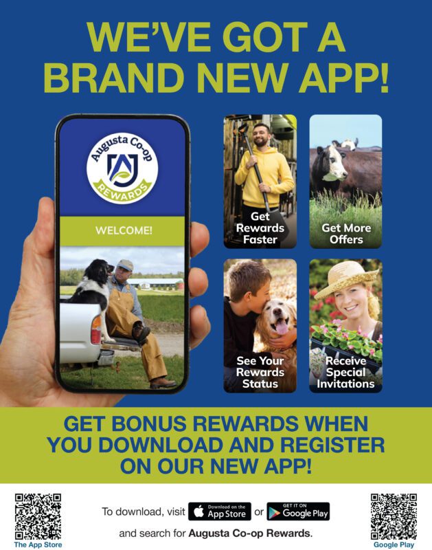 * Earn one point for every one dollar ($1.00 USD) spent less taxes, and less excluded, returned, or refunded items. Augusta Co-op and W.F. Paulett Ace Hardware reserve the right to adjust points rules and item eligibility; see store for details. Points cannot be exchanged for cash. Points will be redeemed in the form of Augusta Rewards Certificates, which must be presented prior to their expiration dates only at any Augusta Co-op store or W.F. Paulett Ace Hardware. Program can be changed or terminated at any time. Augusta Co-op reserves the right to modify, suspend, or terminate the rewards program, or any member’s participation in it, at any time and for any reason. Void where prohibited. By enrolling, you agree to abide by the Terms and Conditions of the program.