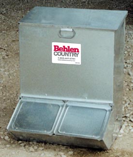 Ideal for 4-H/FFA hog feeding projects or hog finishing projects where you only have a few pigs to finish. Made of galvanized steel. Each unit comes fully assembled. Trough feed adjustment control. 2 door compartments. Holds up to 3 cubic feet of feed. 24″ wide X 22″ tall X 28″ deep.