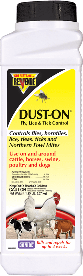 Dust-On® protects listed pets and livestock from pests. Kills and repels flies,