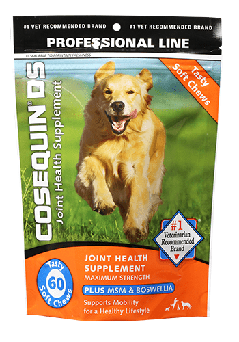 Cosequin DS Maximum Strength Plus MSM and Boswellia comes in a 60 ct tasty soft chew and contains FCHG49® Glucosamine Hydrochloride†, TRH122® Sodium Chondroitin Sulfate†, Boswellia, and MSM (Methylsulfonylmethane).This combination of ingredients helps to protect your dog’s joints while supporting healthy joint function and mobility.