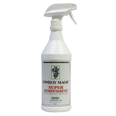 Gives hair a super shine. Helps repel show ring dust and dries fast. Reflects a full spectrum of light resulting in maximum body shine under sun or show ring lights. Makes it more difficult for show ring and stable stall dust to collect on hair which saves grooming time and work. Added aloe vera strengthens and conditions hair and skin. Will not become gummy and sticky after days of use, reducing the number of trips to the wash rack.
