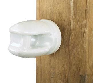 A heavier strength insulator for use in electric fence lines and corners. Produced from specially formulated electrical porcelain for superior dielectric and mechanical strength.