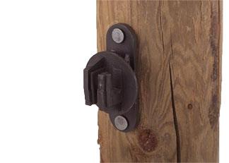 Sold by the pack. For use with Equi-rope, high tensile fence and other large diameter electric fencing material on wood posts. Large diameter flange prevents arcing. Heavy fingers carry wire 3/4″ from post. Molded of high density polyethylene with carbon black for superior UV resistance. Perfoms in any climate. Includes galvanized ring shank nails for mounting to post.