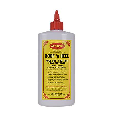Directions – Clean and trim, when necessary, affected hoofs to expose and remove all dead, loose, undermined tissue. Control any bleeding before treating. Slowly squirt on lesion, covering and saturating it and surrounding area thoroughly while holding hoof inverted. Permit Dr Naylor’s hoof n hool to penetrate before releasing animal. Foot may be wet pack bandaged or soaked to enhance healing. Reusable and stable. Treat twice daily until healing results. Retain animal in a clean, dry area while it is undergoing treatment. Turn sheep out in pasture that has been vacant for at least two weeks. Keep separate from non-treated, affected animals.