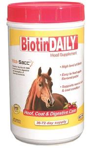 A nutritional supplement for horses to improve hoof growth and overall hoof quality in an easy-to-feed pellet form. Has also been shown to improve coat condition. Contains 320 mg of biotin per pound in a palatable apple flavored pellet. Also contains YeaSacc 1026 to maintain a healthy intestinal tract. Includes flax seed meal for a source of amino acids, minerals and vitamins. Safe for use on all horses including pregnant and lactating mares. 2.5 lbs provides a 40 to 80 day supply depending on feeding rate.