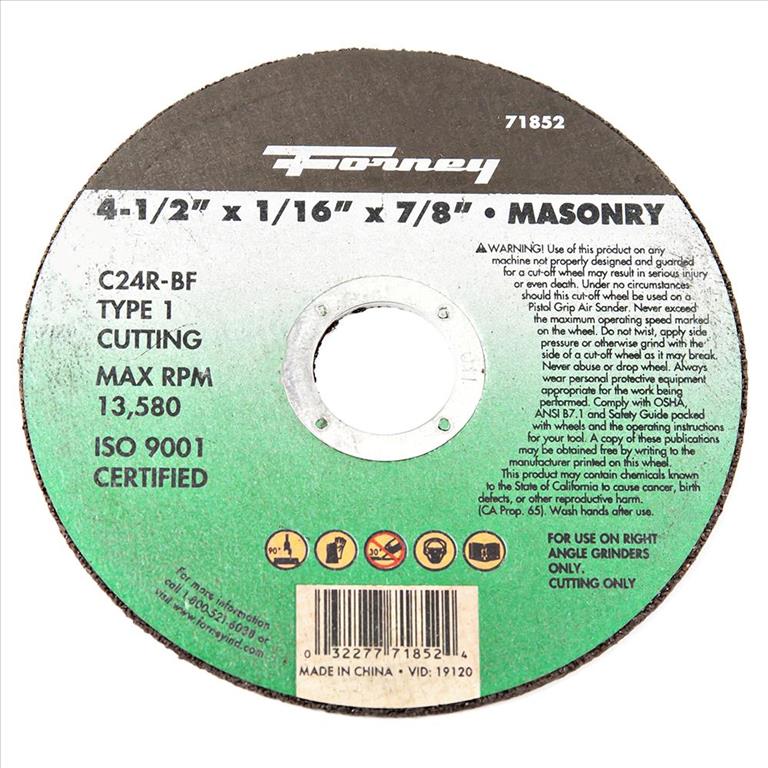 safe, dependable service. Type 1, 4-1/2″ x 1/16″ x 7/8″. Maximum RPMs: