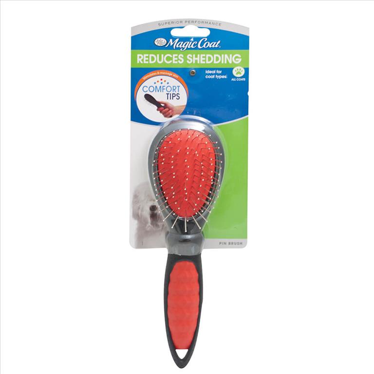 For a well groomed appearance, dogs need to be combed and brushed regularly. The Magic Coat® Pin Brush features an ergonomic comfort handle and metal pins used to help reduce knots and tangles leaving a shiny, healthy coat.