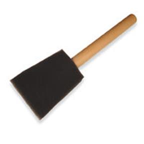 A paint brush with a patented hi-density poly foam material head instead of bristles when a smooth finish is desired and brush stroke marks are an issue. For all paints, stains, and varnishes. Wood handle.