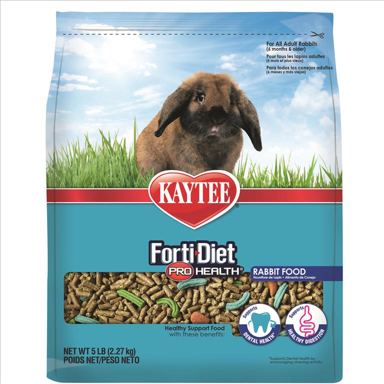 Kaytee Forti-Diet Pro Health Adult Rabbit food was developed by an animal nutritional expert to ensure your pet gets the proper nutrition. Forti-Diet Pro Health contains probiotics and prebiotics to support digestive health. This food is rich in natural antioxidants for general health and immune support plus contains some larger, more crunchy pieces to support dental health through natural chewing activity.