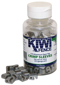 Sold by the pack. Different from other crimp sleeves in that the open side allows for installation onto an existing high tensile wire fence after it has been installed. Allows you to make permanent electrical connections on 12.5 and 14 gauge wire. Use the 3-4 slot on the crimping tool (sold separately) to compress.