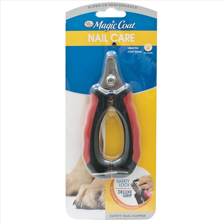 Magic Coat® Safety Nail Clippers are made with heavy-duty stainless steel blades made for easy, safe and painless trimming. Features an ergonomic rubberized safety grip, a bar to prevent over-trimming and a handle locking mechanism for safe storage.