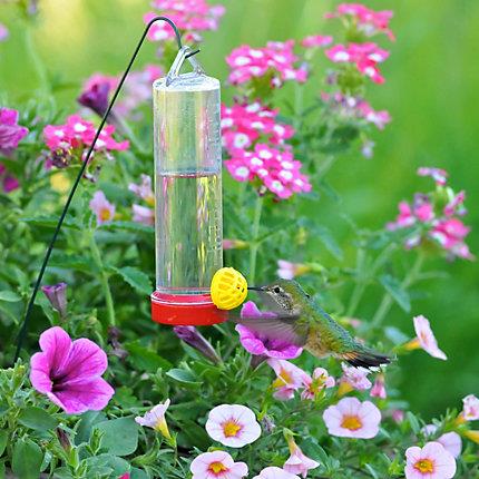 This hanging bird feeder for hummingbirds is just perfect for hanging over a planter box, creating an attractive environment sure to please the tiny gentle creatures.