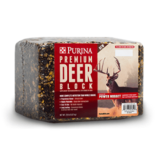 Convenient way to attract and feed deer year-round. A highly palatable, easy-to-use premium block supplement for attracting and maintaining deer. Provides more balanced nutrition than whole grains. Now updated with the Purina Power Nugget™ to help support the nutritional requirements of the deer.