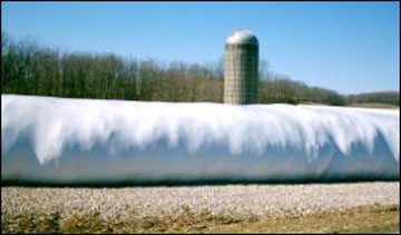Designed to fit silage bag machinery. Provides excellent storage of silage and haylage when properly harvested without the fixed cost of a silo. Stretch material is white on outside to reduce heat and black on inside to block sunlight transmission. Available in widths from 8 to 10′ wide and various lengths of 150 to 300′ to fit most silage bag machinery. High quality material.