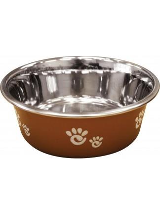 The Barcelona bowl combines stainless steel and a decorative paw print matte finish exterior. Removable rubber ring for no slip and easy cleaning in the dishwasher.