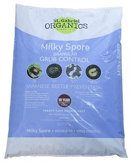 A powder originally developed by the USDA for use on lawns and other grassy areas to kill the grub stage of the Japanese Beetle. The natural bacteria eats the grub from the inside out and does not harm beneficial insects. This form of milky spore can be conveniently applied using a fertilizer spreader. Apply in spring, summer, and fall for 2 years to achieve desired milky spore population. Use on lawns, flower beds, ground covers, and around trees and shrubs. Water in after application. 20 lbs covers up to 7,000 sq ft.