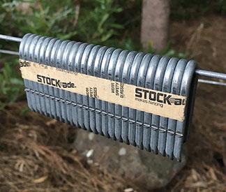 Sold by the case. For use with the Stockade fence stapling system. The world’s only power driven barbed staple. This heavy duty 9 gauge staple is designed to fit the magazine of the Stockade power driven stapler and is made of professional grade material. Barbed for extra holding power. The shaped crown also helps to grip the fence wire for improved holding power. The ST400 barbed staples are 4mm in diameter and are recommended to be used for rural livestock fencing, medium mesh, heavy mesh and heavy woven fencing. It is also great for highway boundary fencing. The staples have also been used in rural utilities applications for attaching the earth wire to power poles. 1-3/4″ long. 1200/case.