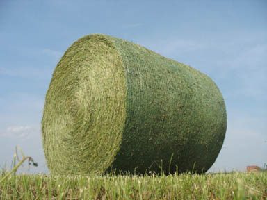 Used to cover round bales of hay or crop residue. Helps to retard nutrient loss & leaf loss in bales stored outside. Sheds water more efficiently than twine. Also makes round bales more transportable. Red strip near end of roll to warn when the end of the roll is near. Over edge rolls have extra width of netwrap so that the netwrap will wrap over the outside edges/shoulders of the bale to provide extra water shedding protection.