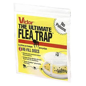 A pack of 3 refill discs for the Victor Ultimate Flea Trap (sold separately). A unique trap that catches fleas with the specially formulated sticky glue disc. The sweet odor lures fleas out of upholstery and carpeting up to 30 feet away. Up to a 93% catch rate has been demonstrated. Catch those fleas before they reproduce and eliminate them without using synthetic chemicals.